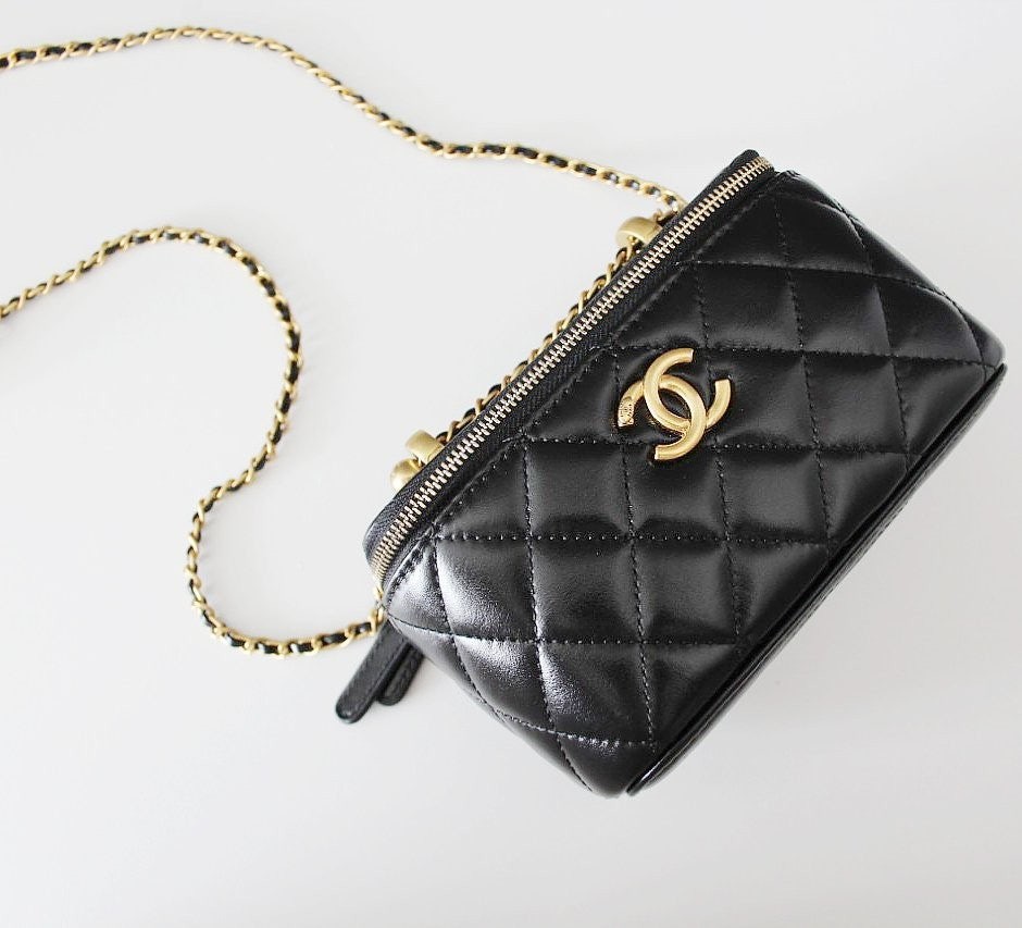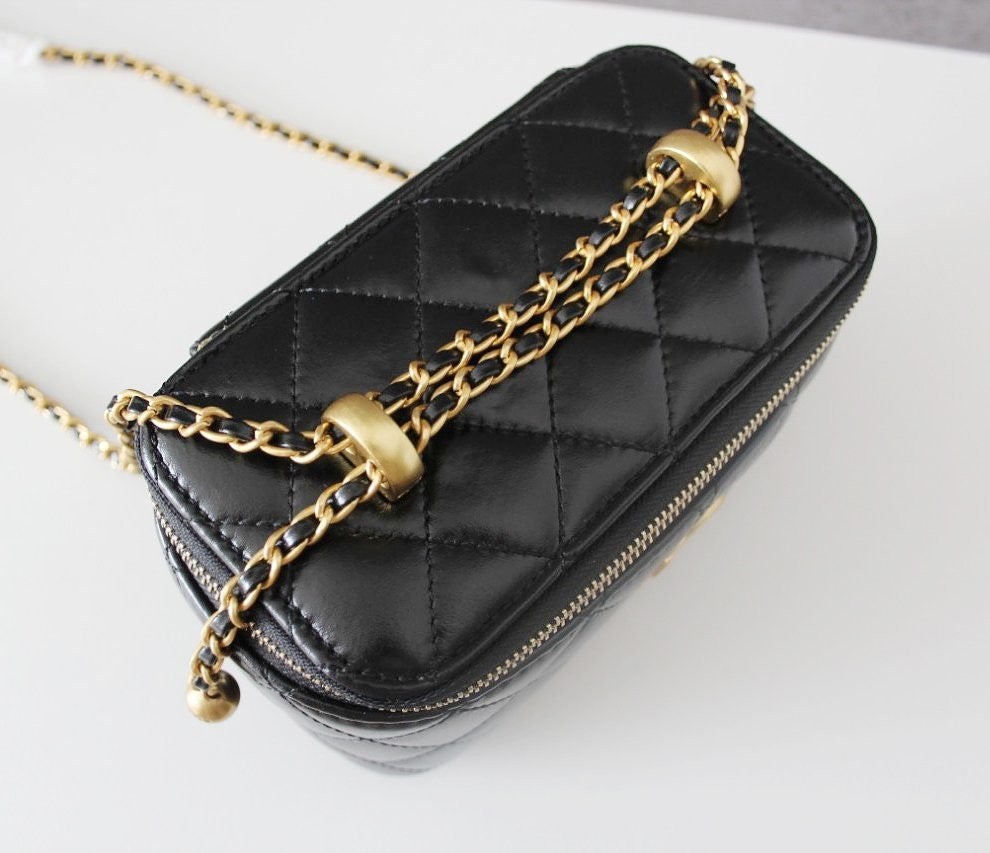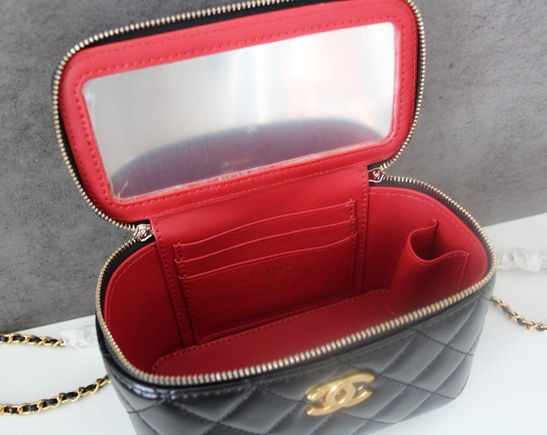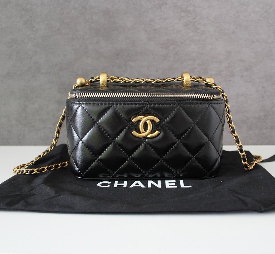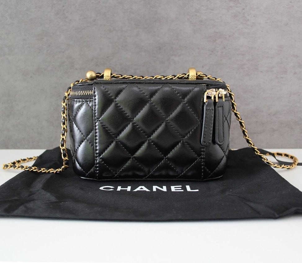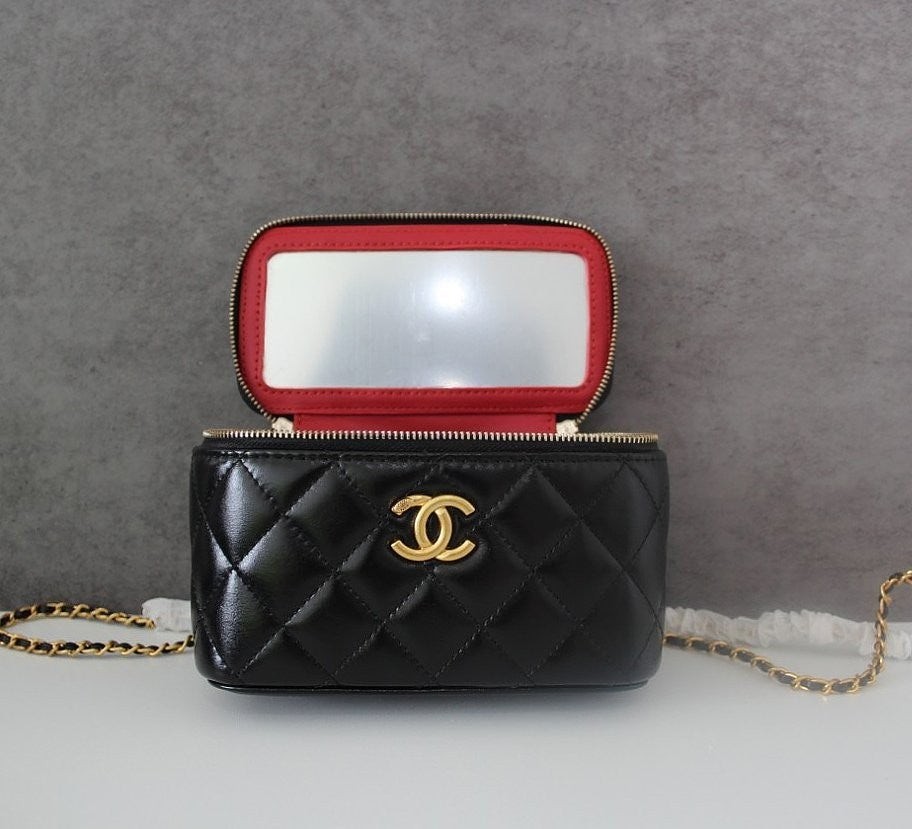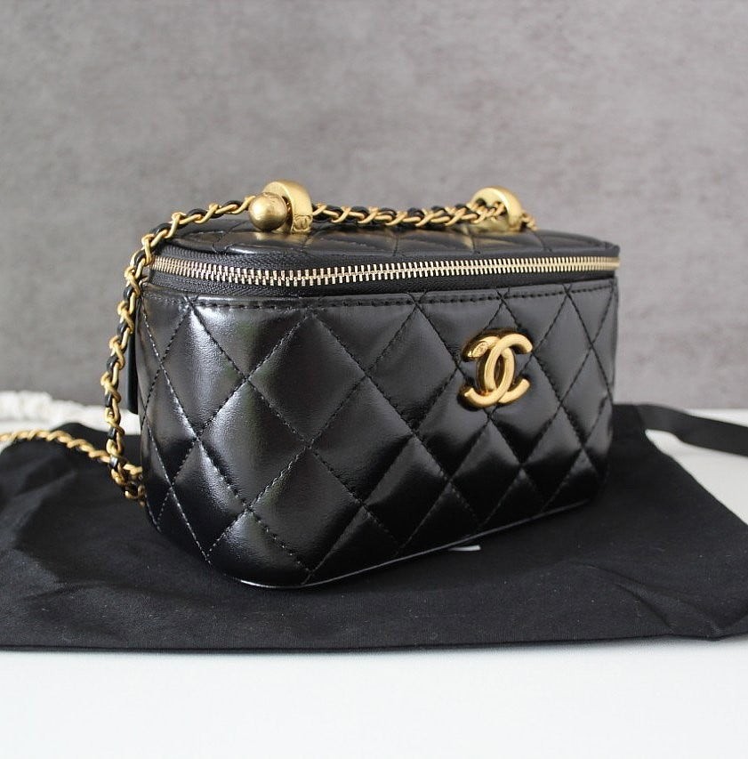 • 샤* 고급 체인 탑핸들 베니티백 램스킨