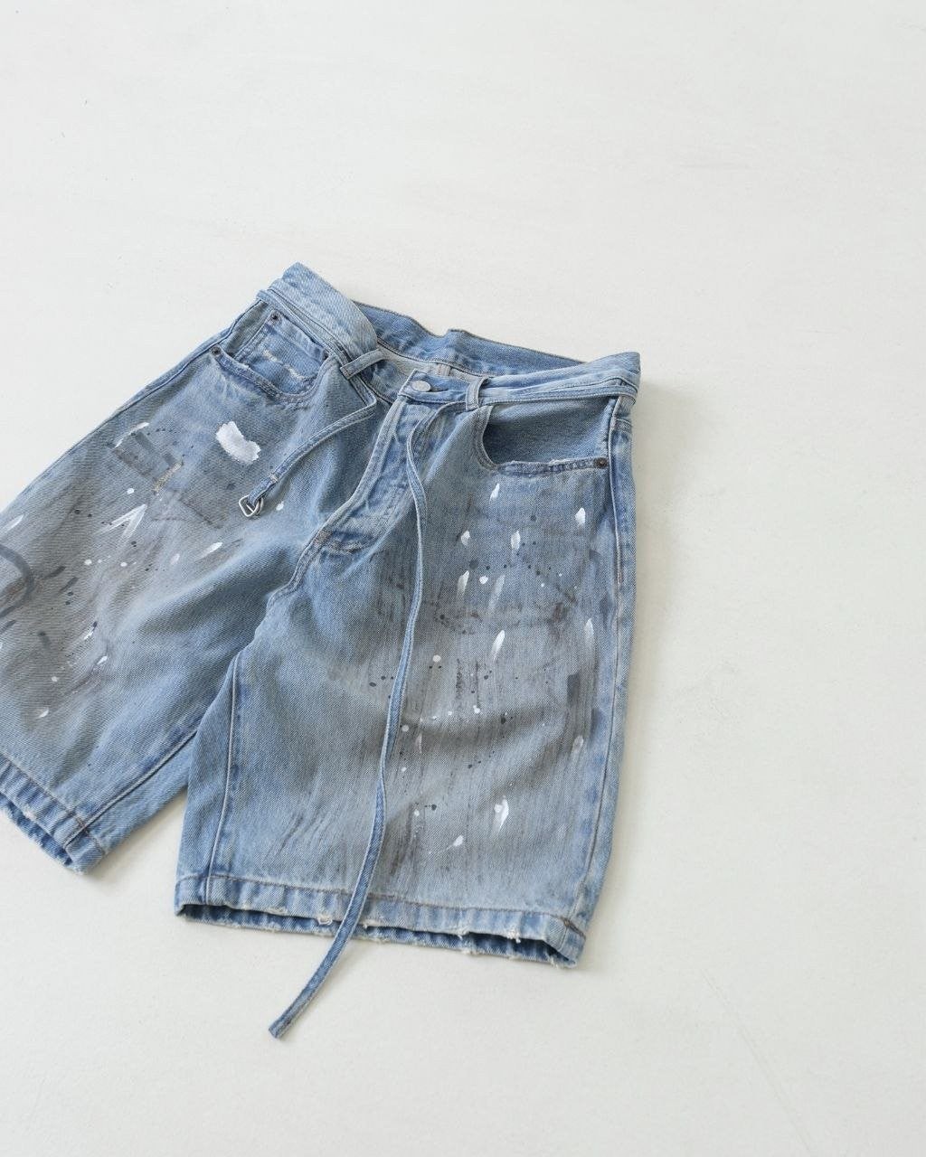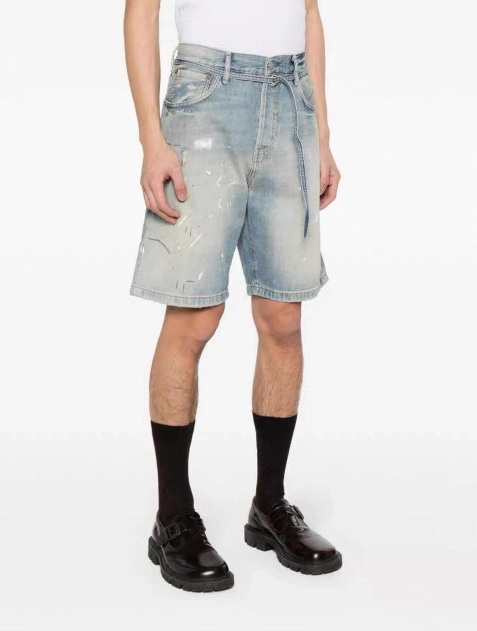 •Ac** Studio AC 빈티지 워싱, 빈티지 효과 화이트 페인트 빈티지 데님 캐주얼 반바지 (5부 길이), Ac** 데님 반바지는 정말 옷장의 만능 아이템입니다! 고품질 데님 원단과 독특한 수작업 얼룩 디자인으로 반바지가 패셔너블하면서도 질감이 느껴집니다.