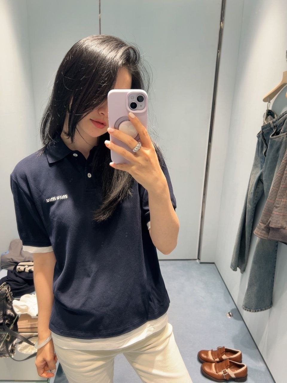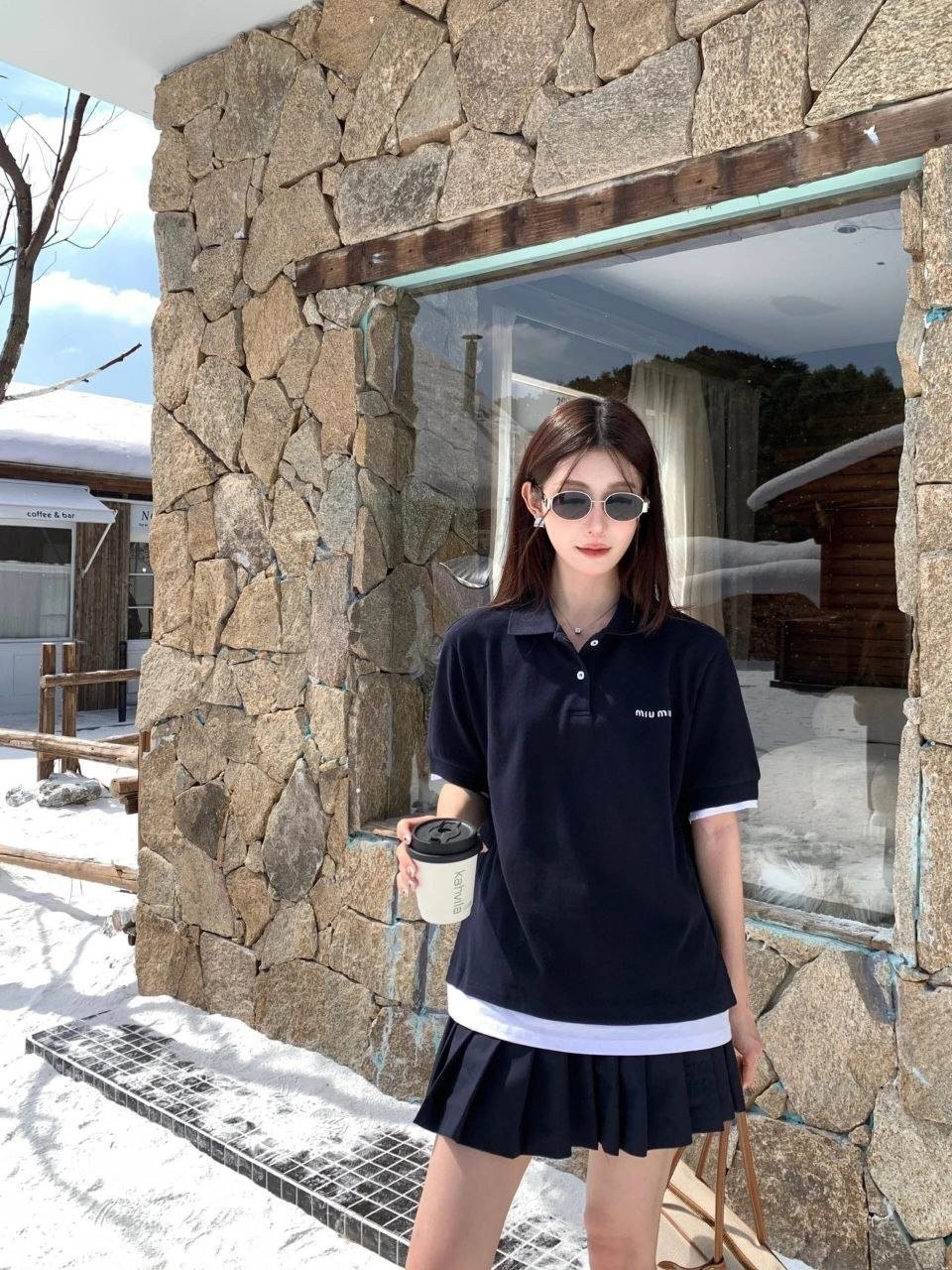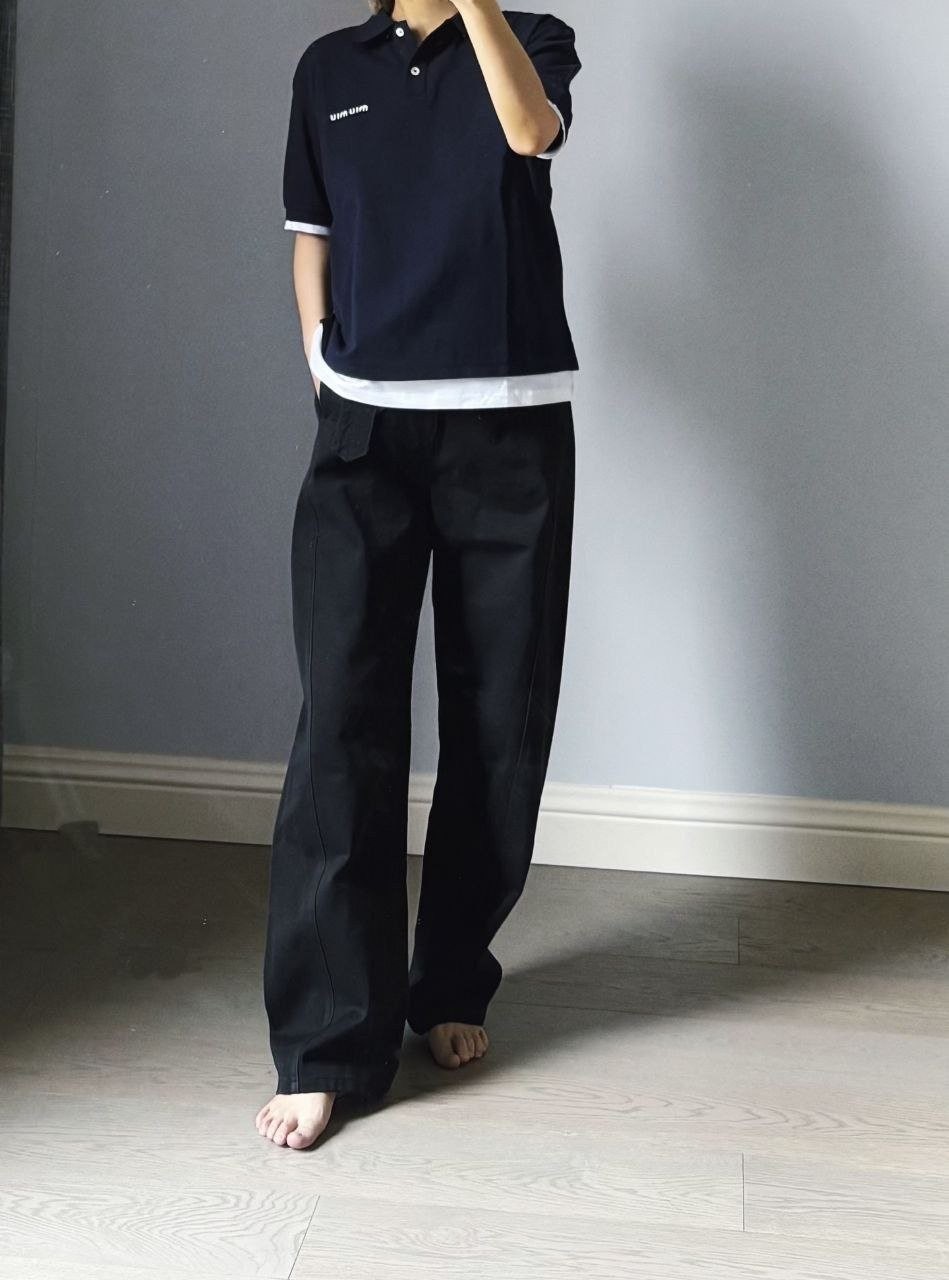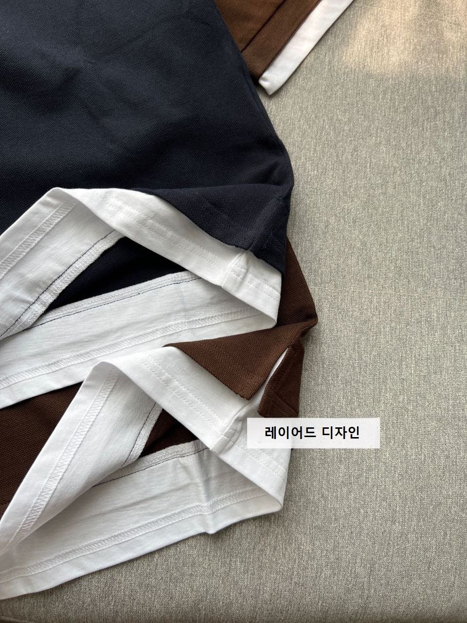 •【Mi*Mi* 페이크 투피스 폴로 셔츠】 큐프라 원단으로 여름에도 답답하지 않습니다. 레이어드 느낌이 물씬 나는 페이크 투피스 디자인으로, 가슴 부분의 심플한 자수 로고