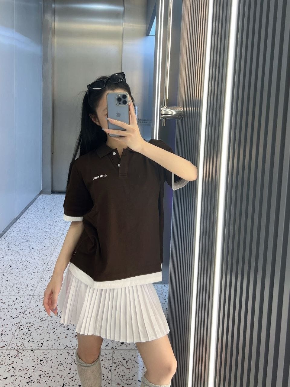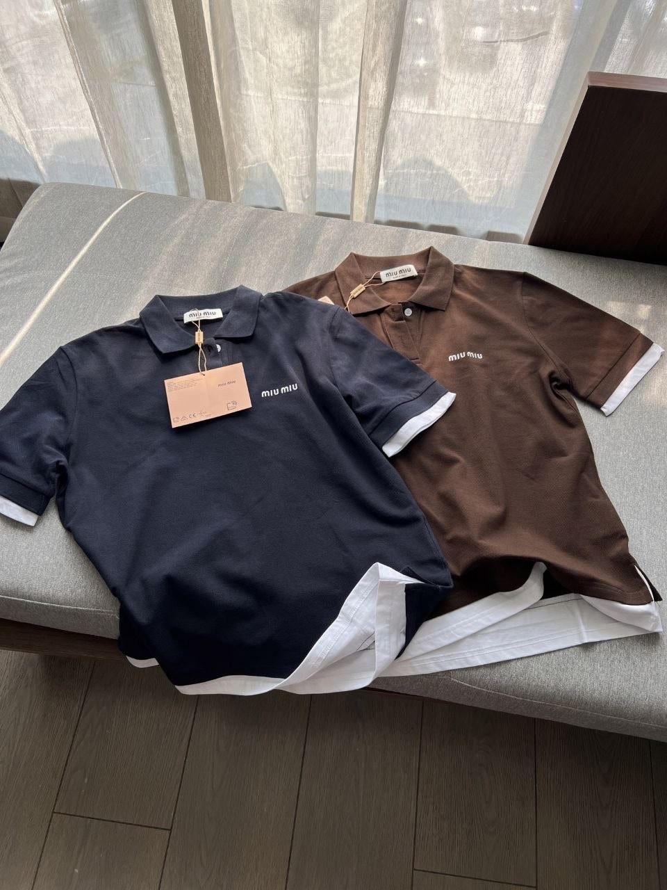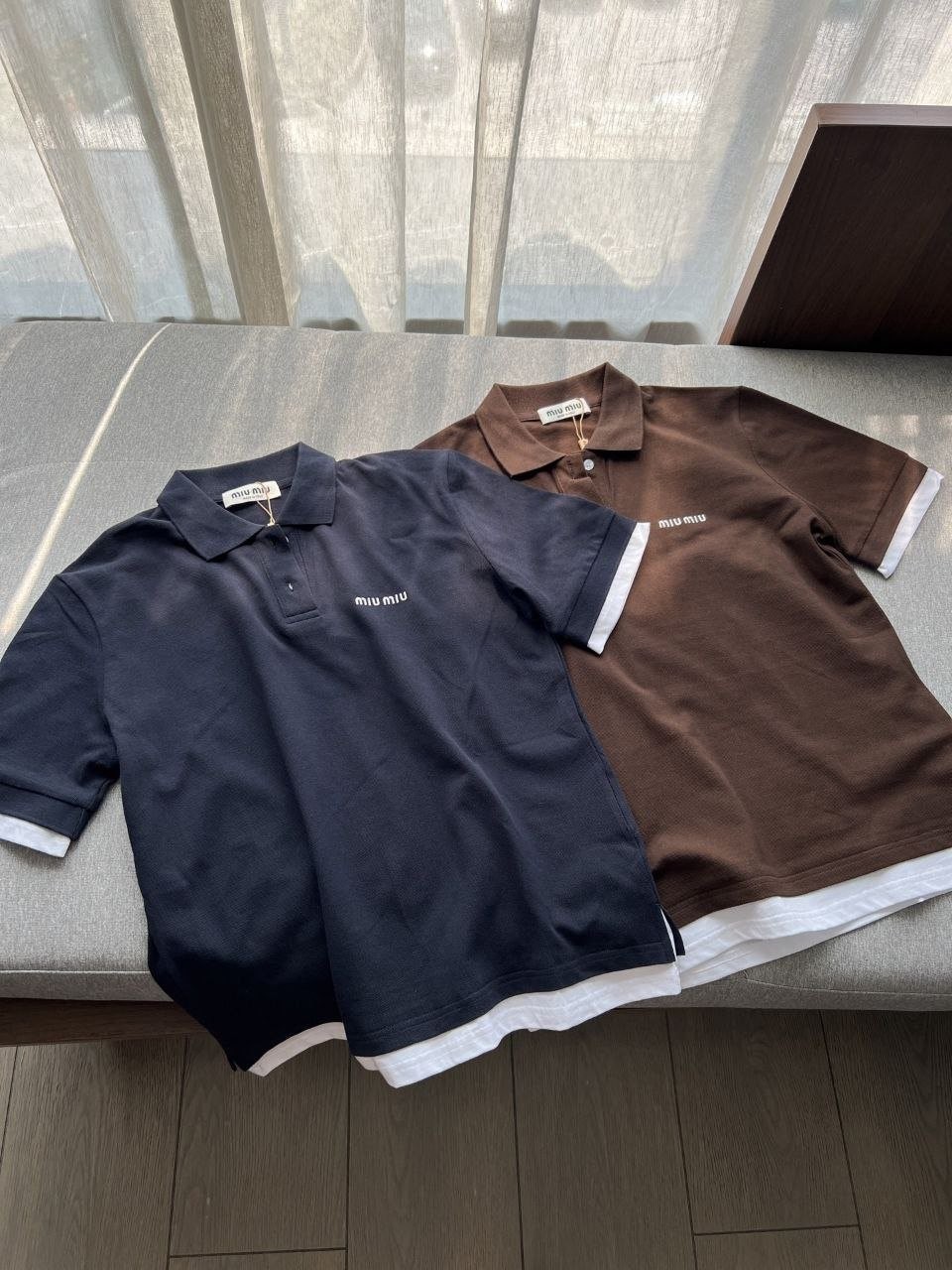 •【Mi*Mi* 페이크 투피스 폴로 셔츠】 큐프라 원단으로 여름에도 답답하지 않습니다. 레이어드 느낌이 물씬 나는 페이크 투피스 디자인으로, 가슴 부분의 심플한 자수 로고