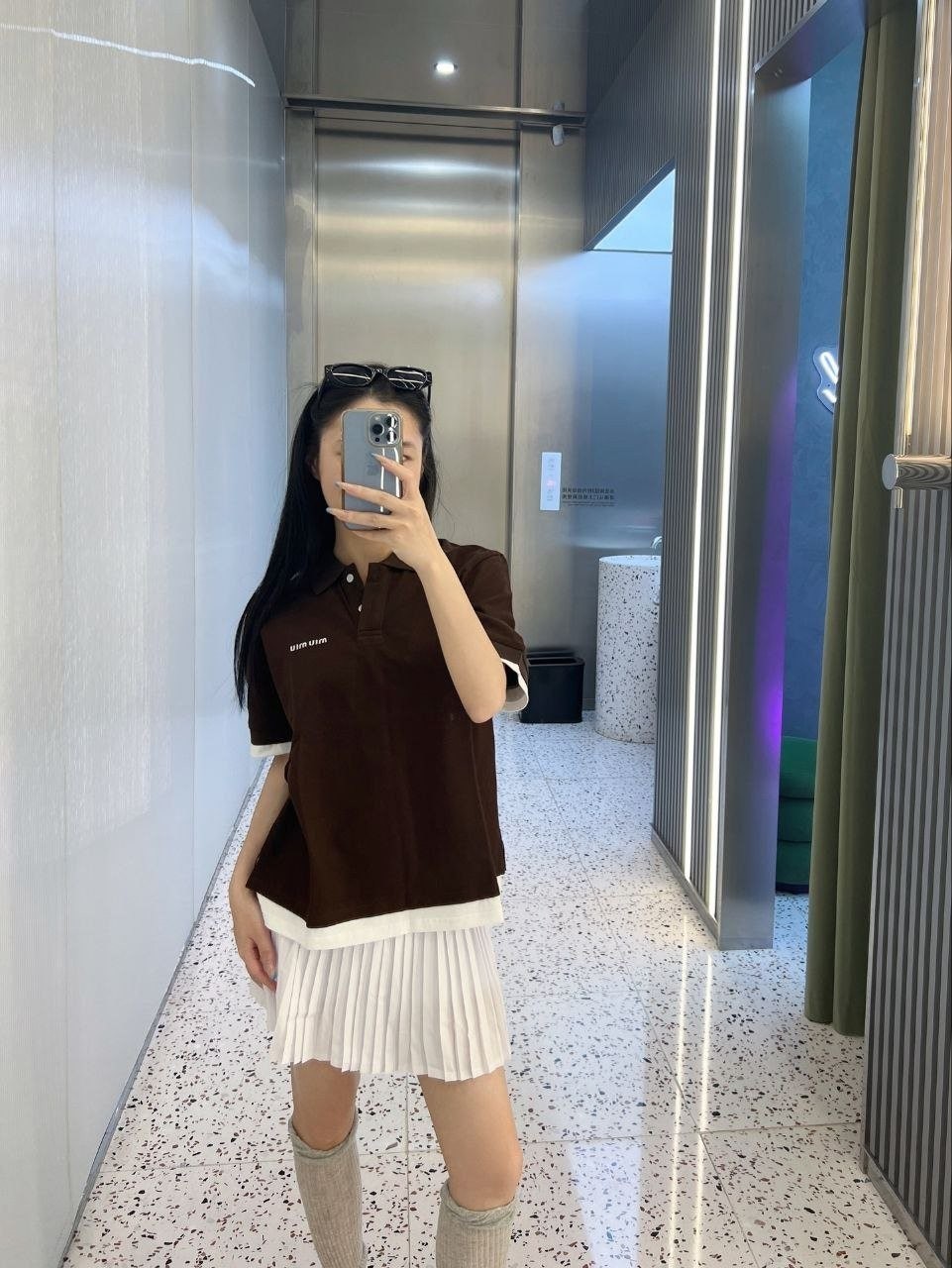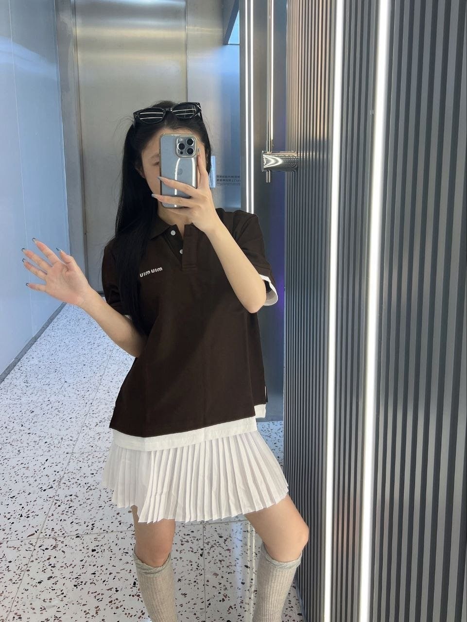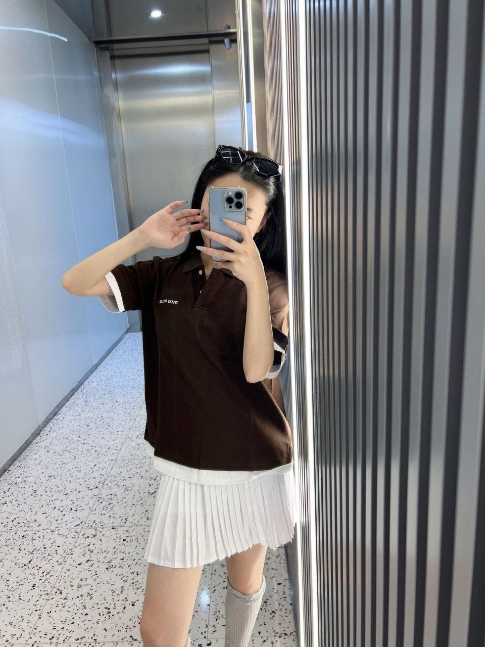 •【Mi*Mi* 페이크 투피스 폴로 셔츠】 큐프라 원단으로 여름에도 답답하지 않습니다. 레이어드 느낌이 물씬 나는 페이크 투피스 디자인으로, 가슴 부분의 심플한 자수 로고