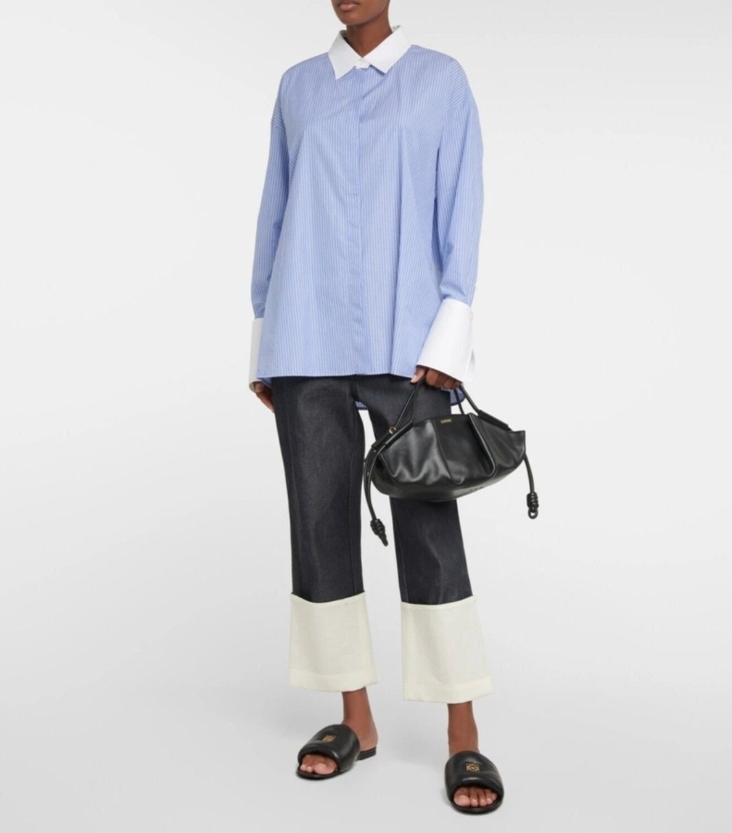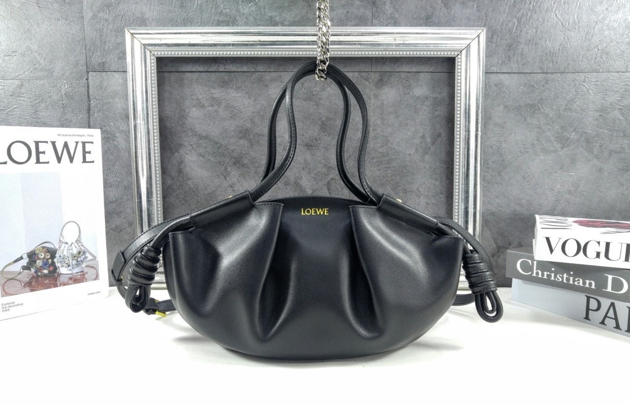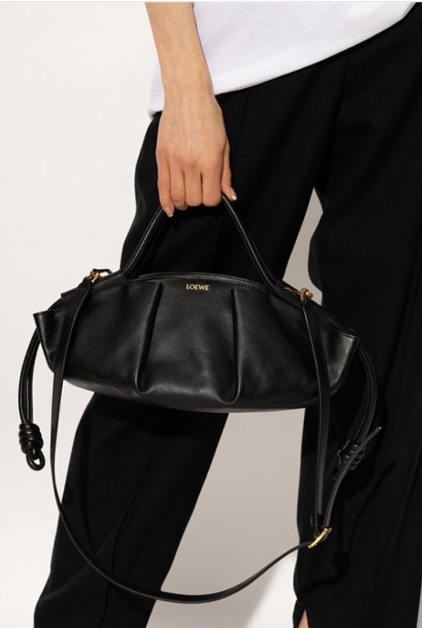 로**의 파세오 토트백은 부드러운 나파 가죽으로 제작되었으며, 앞면에 주름 디테일이 돋보이는 우아한 실루엣이 특징입니다. 탑 핸들이 있으며, 내부는 골드 톤 스웨이드 안감으로 마감되었습니다.