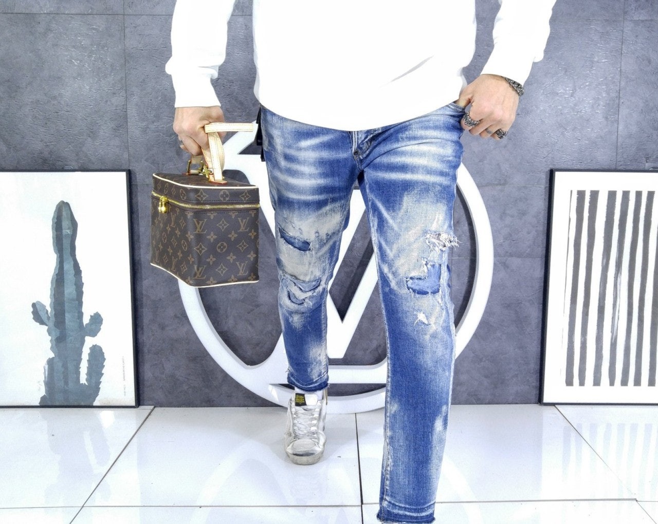 • 구* 타이거 라인 워싱 청바지