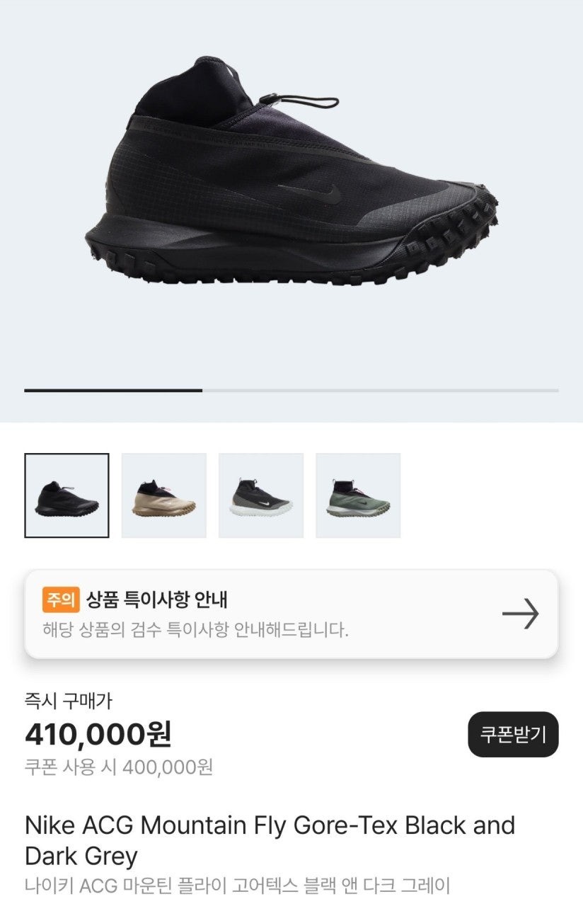 나** ACG 마운틴플라이 블랙 앤 다크그레이 > 신발