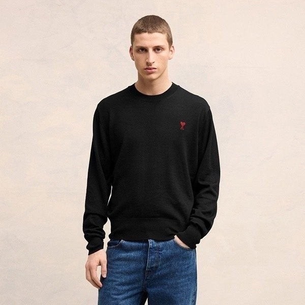 • 프** 포켓 레드로고 크루넥 스웨터