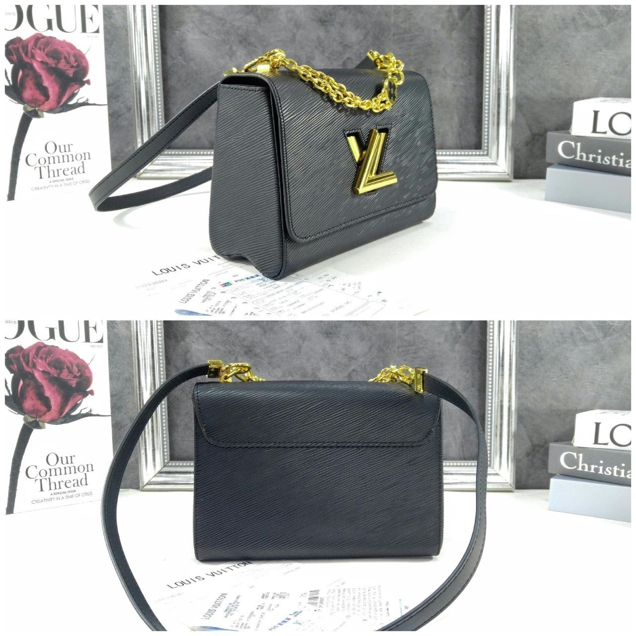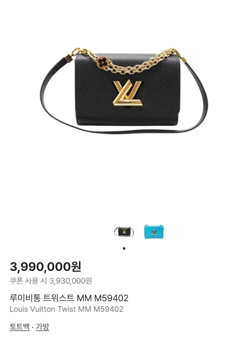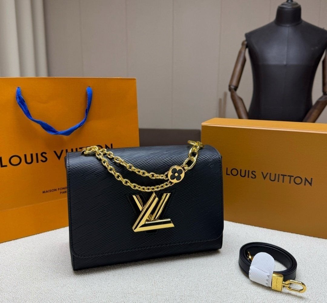 골드 LV 트위스트 턴락 잠금이 현대적이고 클래식한 감성을 돋보여줍니다.