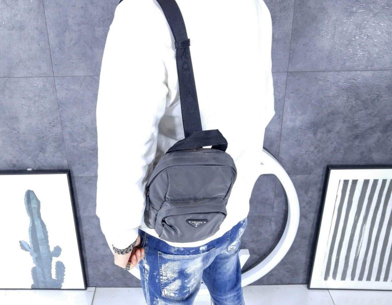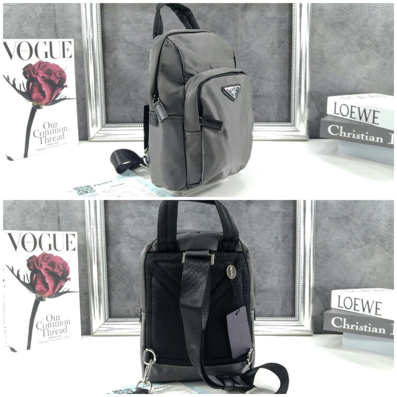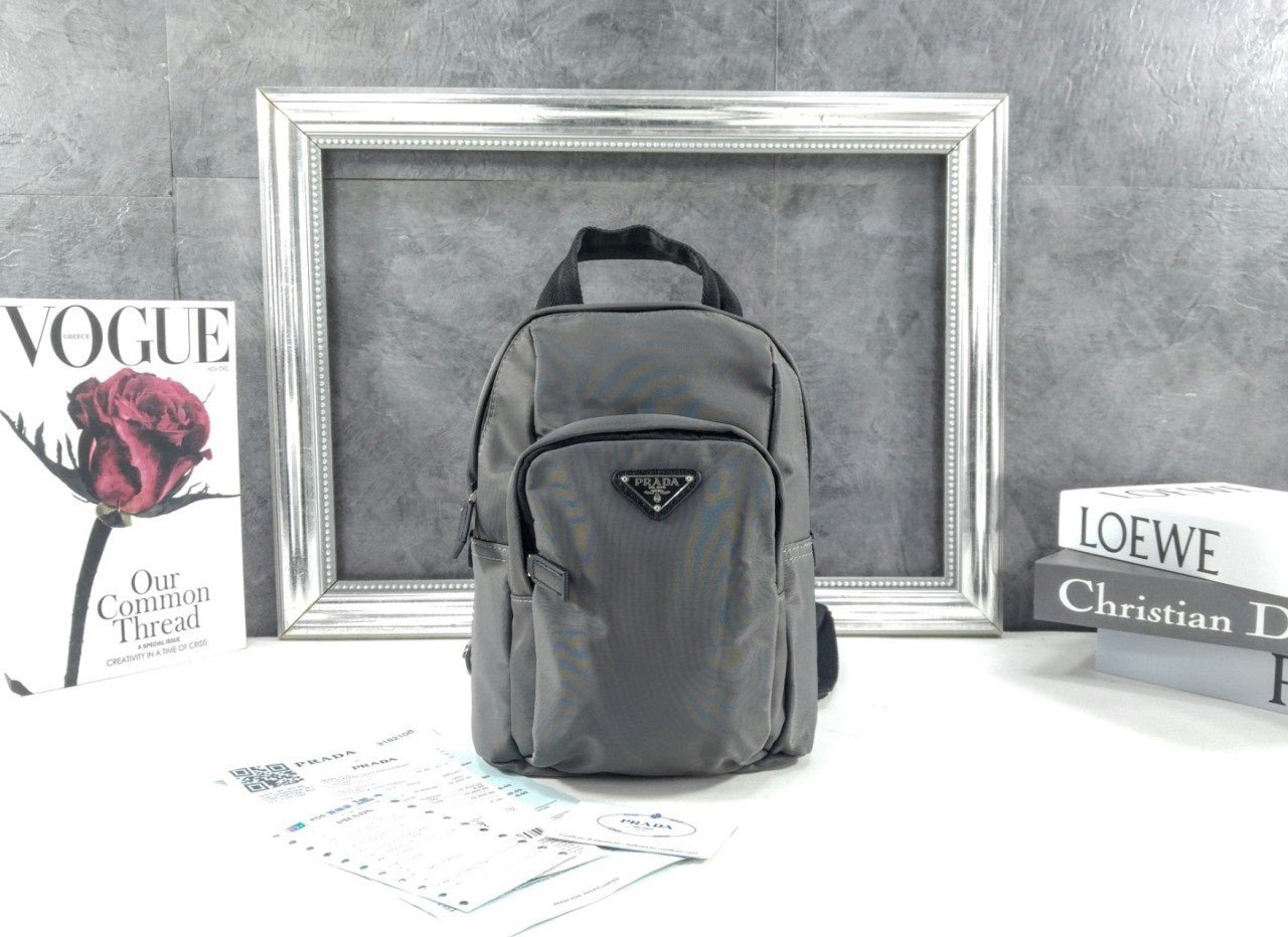 리나일론 소재로 제작된 이 백팩은 가벼운 컴팩트 디자인과 유용한 스타일이 특징입니다. 프**의 상징적인 코드가 조화를 이루며, 사피아노 가죽 디테일이 스포츠 감성과 기능성을 한층 세련되게 완성합니다. 에나멜 금속 트라이앵글 로고가 아이코닉한 포인트를 더합니다.
