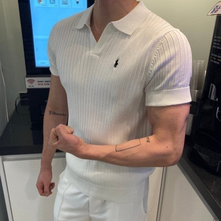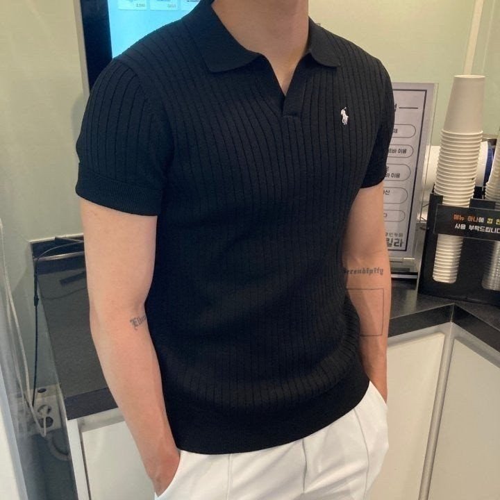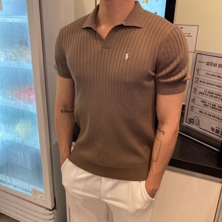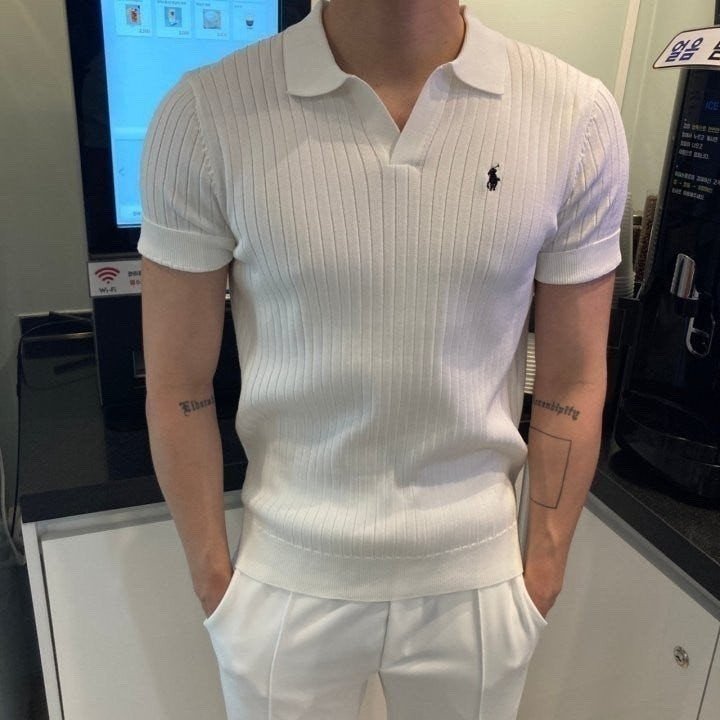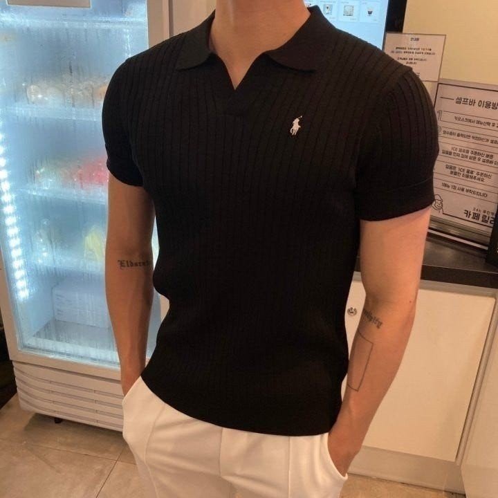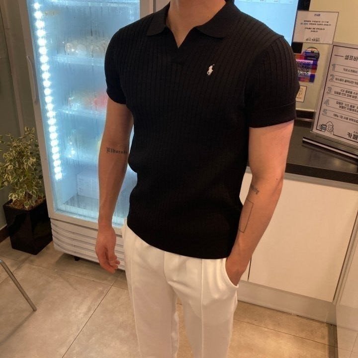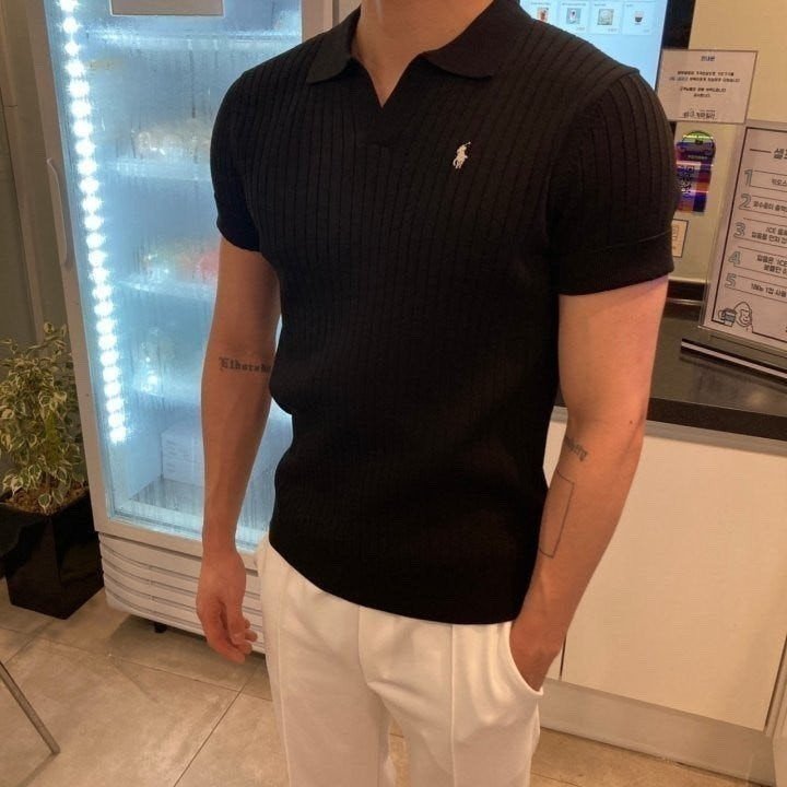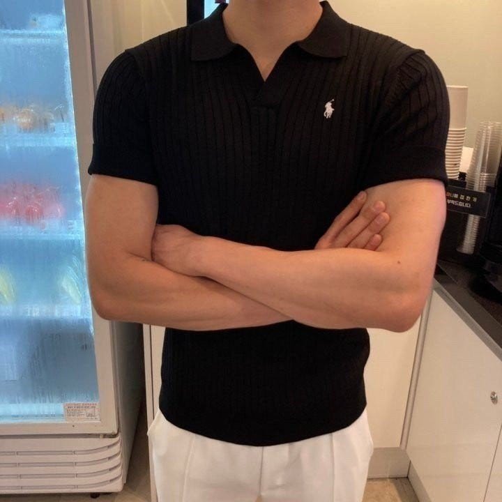 폴* 머슬핏 오픈카라 반팔니트 요약정보 및 구매
